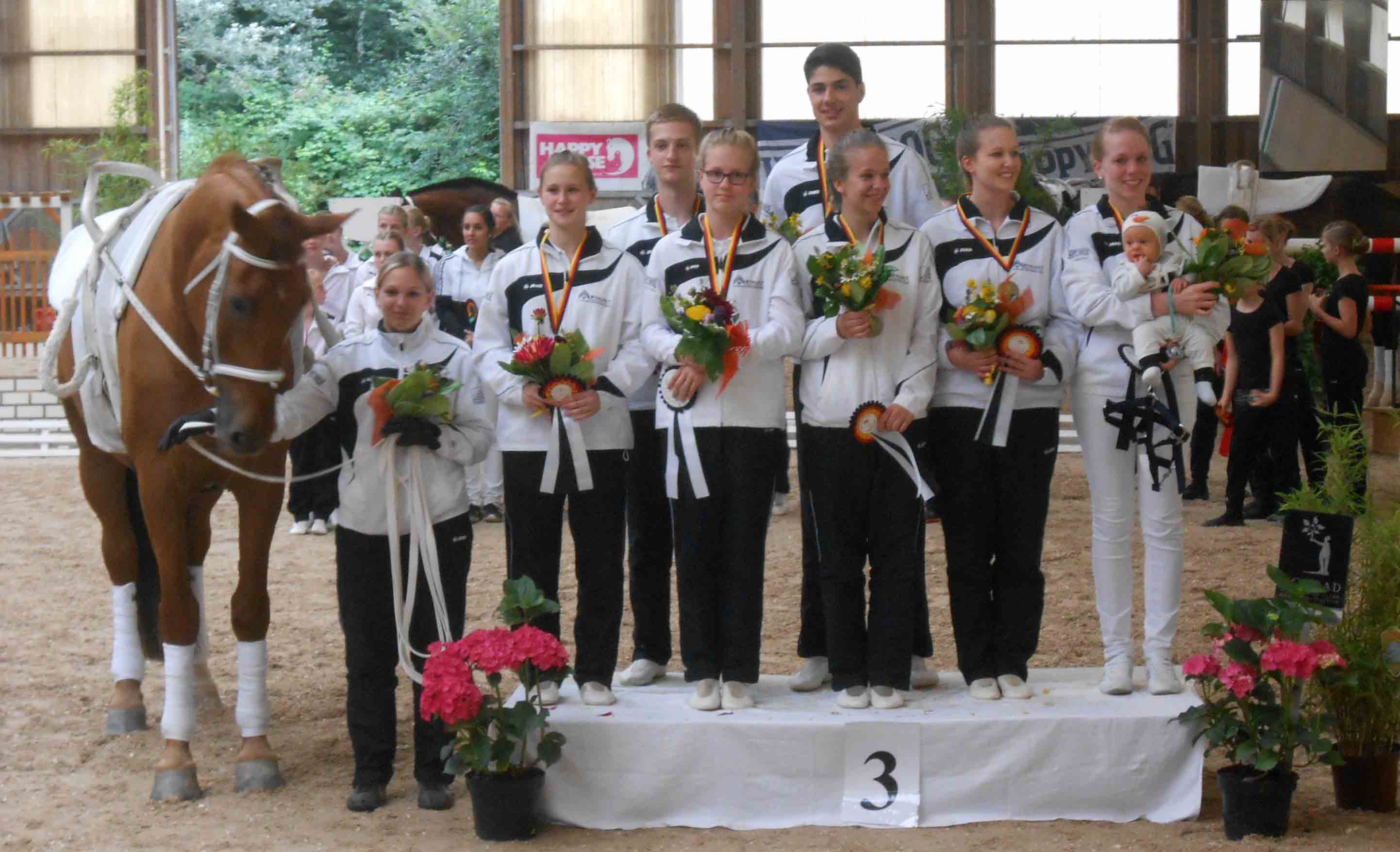 Samstag, 7:30 Uhr – so früh durfte Longenführerin Nikola Becker die Mannschaft Kurtscheid III als erstes Starter-Team in den Zirkel führen. Nach zwei gelungenen Umläufen (Pflicht und Kür der A-Gruppen) konnten sich die Nachwuchsvoltigierer mit der Wertnote 4,849 (0,025 hinter Platz 2) über den 3. Platz freuen.